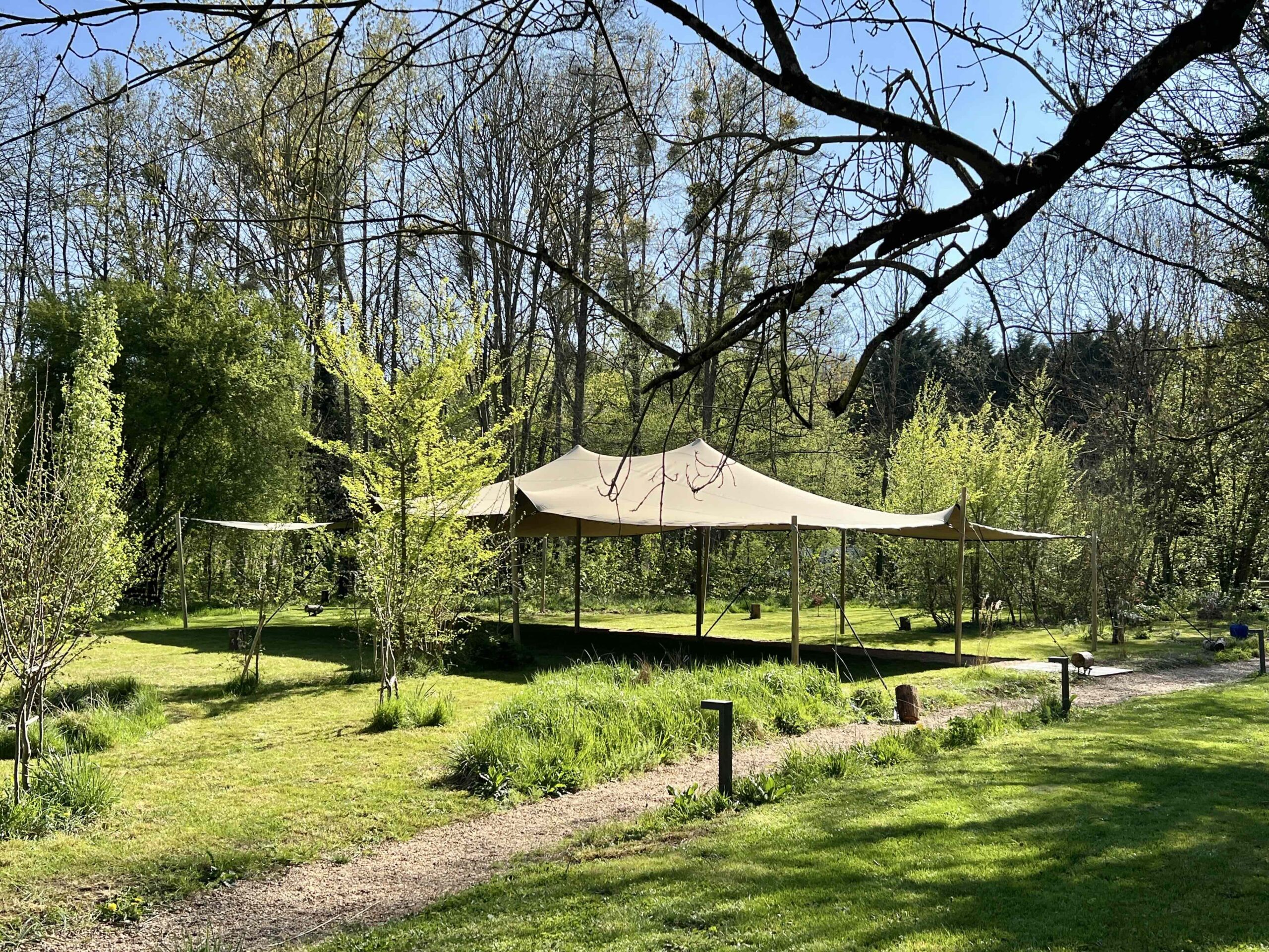 Tente stretch appelé aussi tente nomade élégante et de qualité qui protège du soleil et de la pluie et permet de profiter de la beauté de la nature.